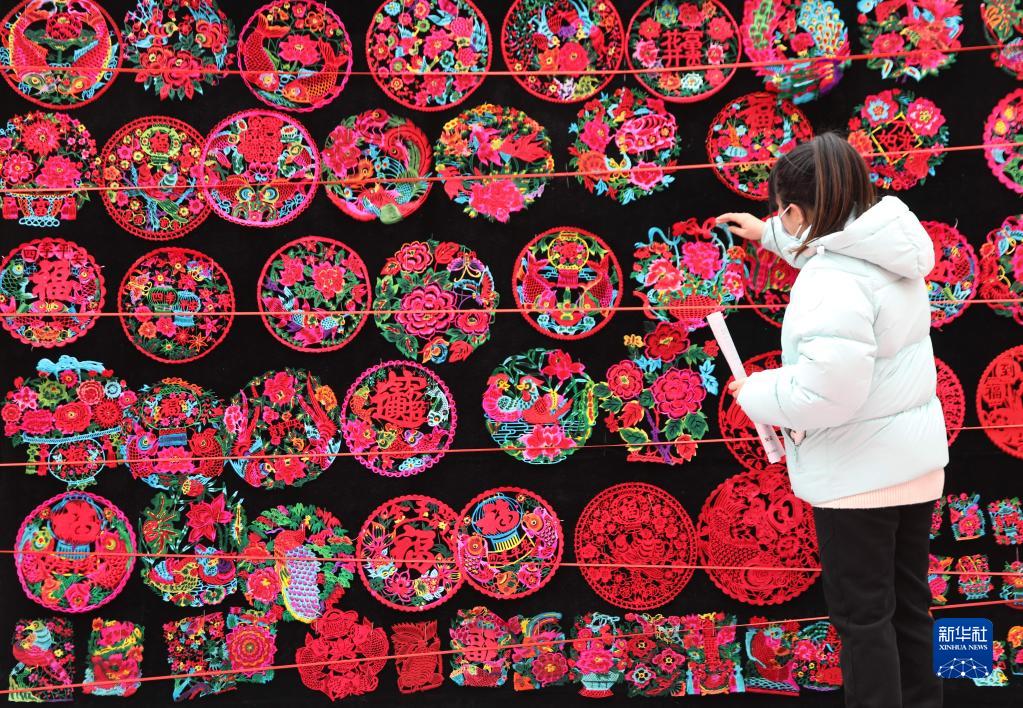 1月14日,市民在河北省承德市雙橋區年貨市場上選購窗花。