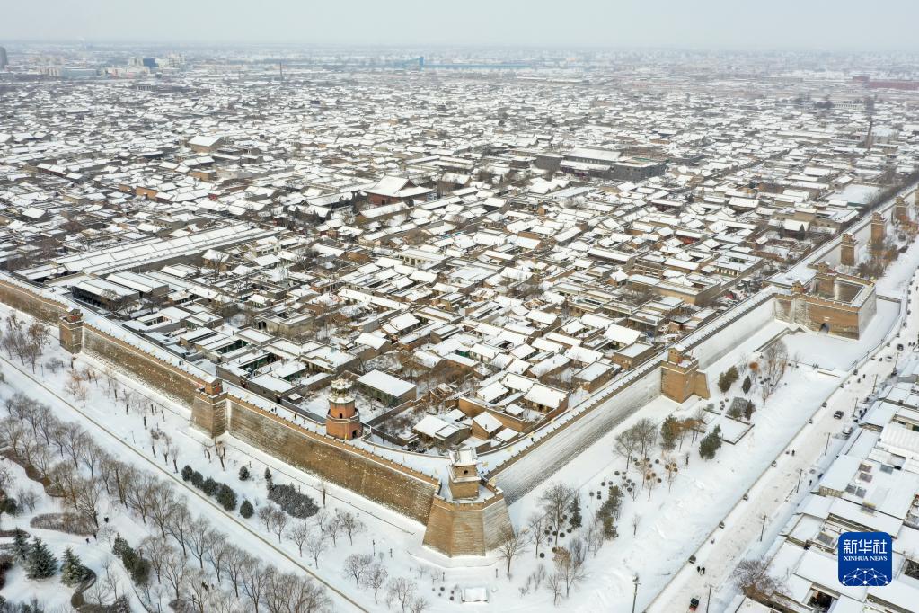 近日,位于山西省晉中市的平遙古城迎來降雪天氣,古城銀裝素裹,美如畫卷。
