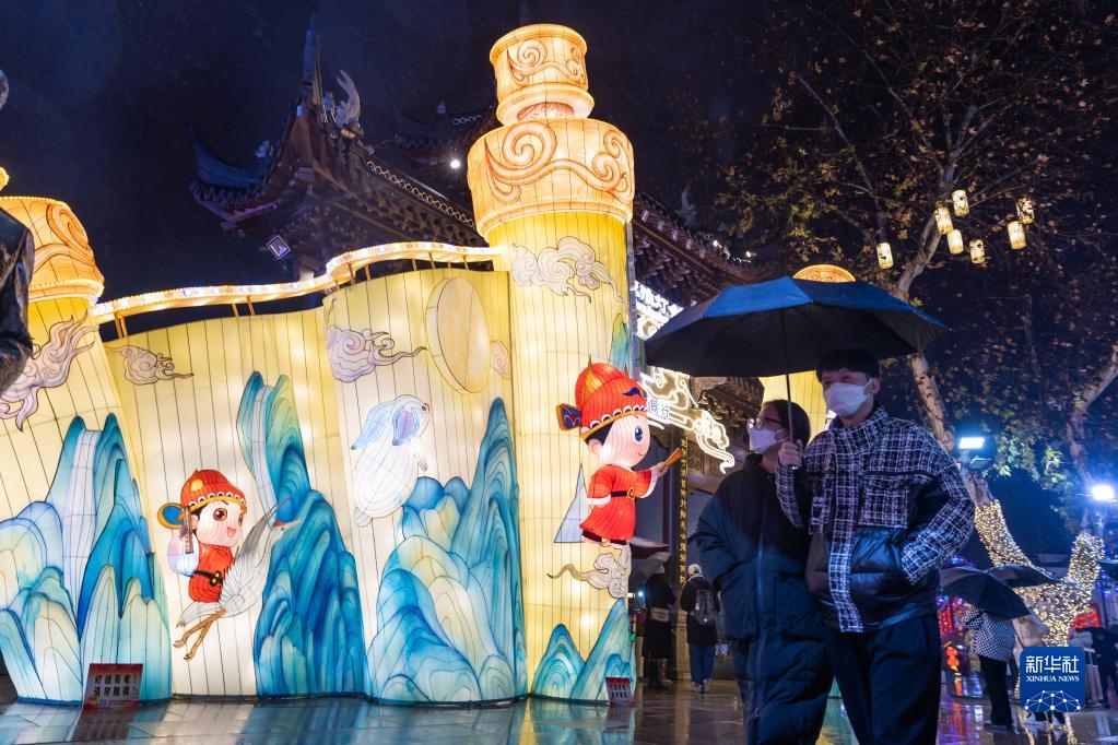 當晚,第37屆中國·秦淮燈會在南京夫子廟景區舉行點燈儀式,吸引不少市民游客。本屆燈會共設置各類燈組170組。新華社發(張夢攝)
