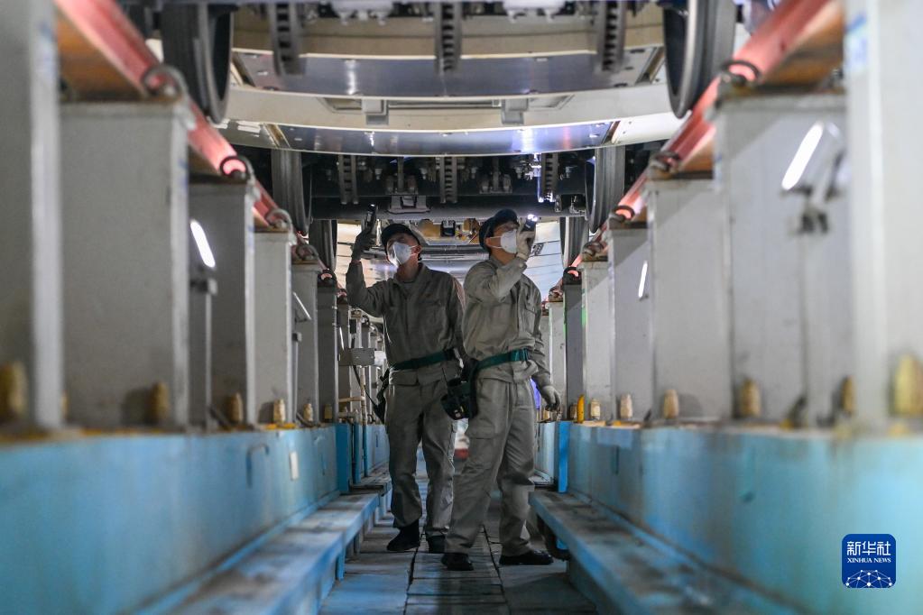 1月14日北方小年夜,烏魯木齊車輛段動車組運用所檢修庫內燈火通明,白天馳騁天山南北的動車在這里集結,一群青年機械師在連夜進行檢查、測試、維修工作,以保障動車運行安全。