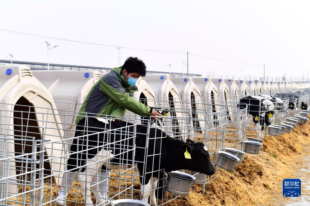 1月15日,在衛崗乳業日照鮮純生態牧業有限公司,工作人員為犢牛打針。