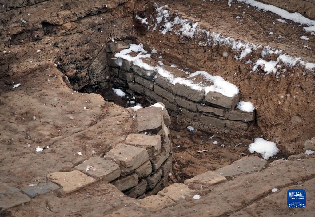 這是河南漢魏洛陽城宮城遺址內的倉窖區磚砌水道(1月14日攝)。