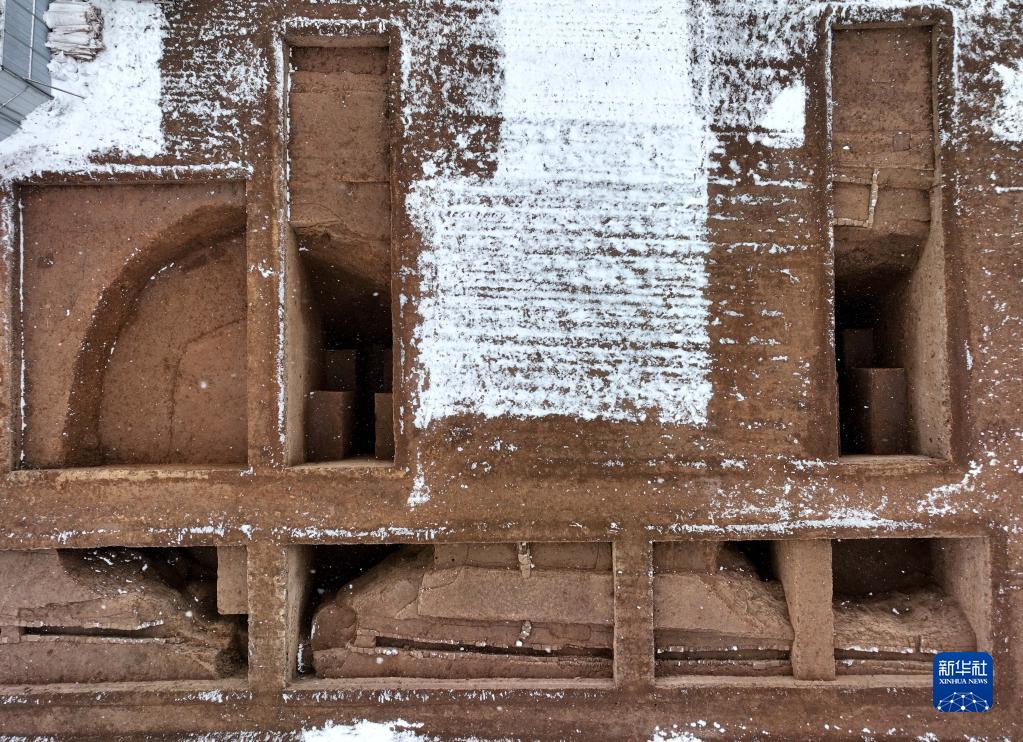 這是河南漢魏洛陽城宮城遺址內的北魏時期倉窖遺跡(1月14日攝,無人機照片)。