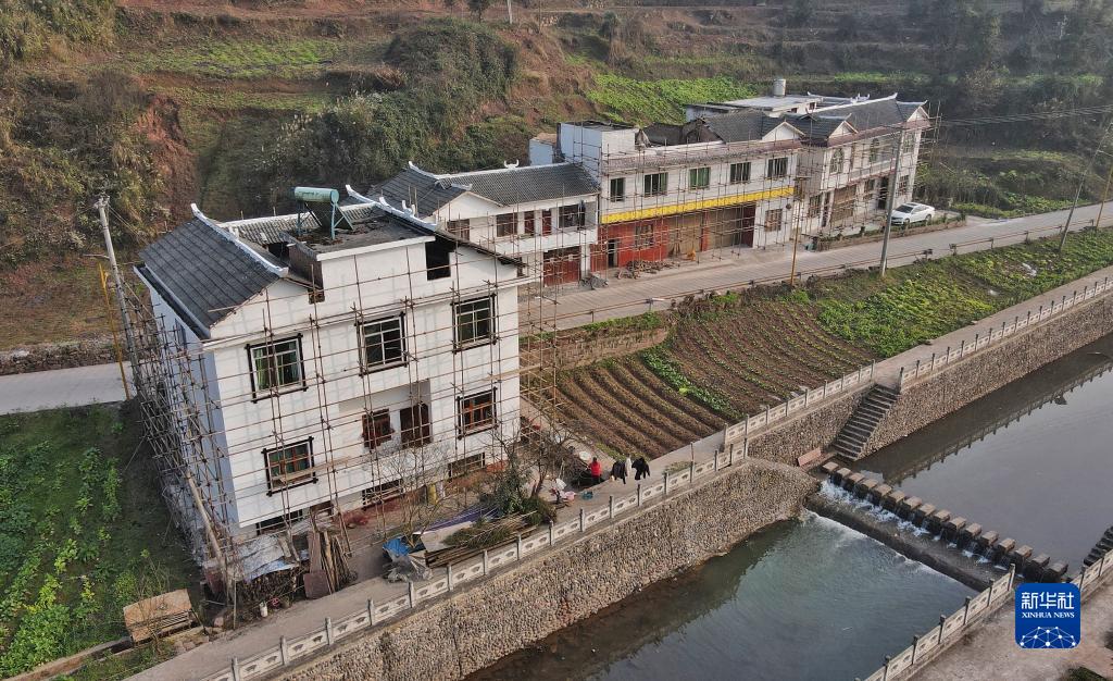 這是1月10日在富民村拍攝的改造中的民居(無人機照片)。