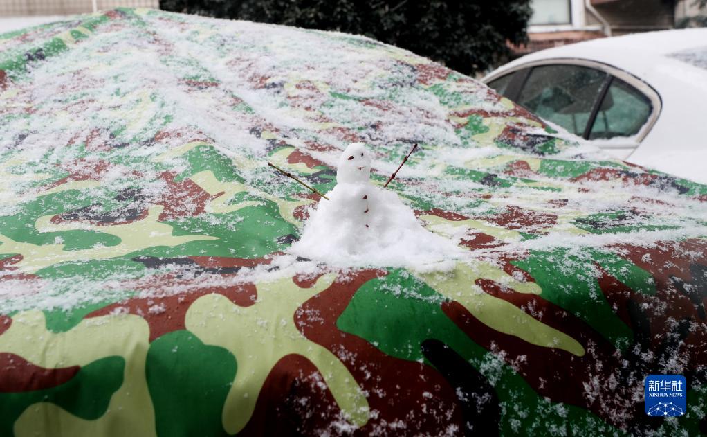 這是1月15日在上海閔行區一居民小區拍攝的雪人。