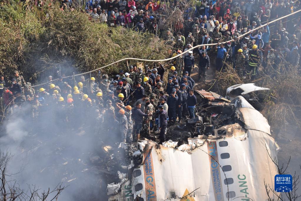 這是1月15日在尼泊爾博克拉地區拍攝的客機墜毀現場。