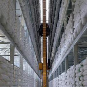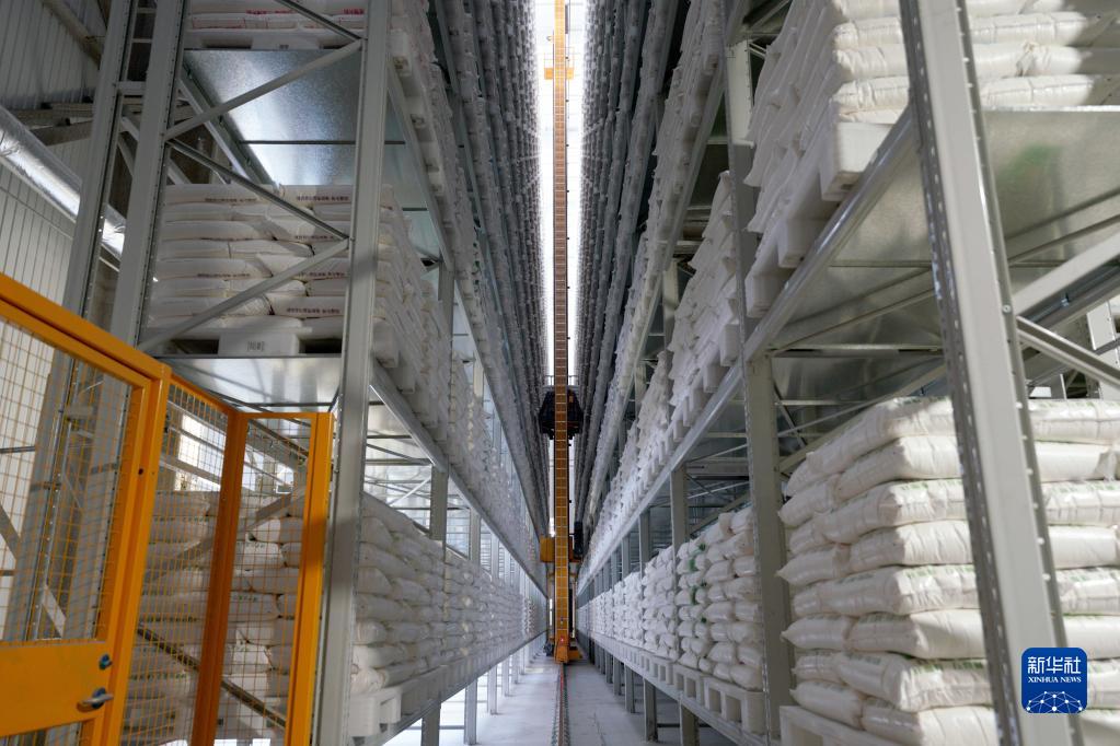 1月15日,在柏鄉縣一家面粉加工企業,機械手在搬運面粉。
