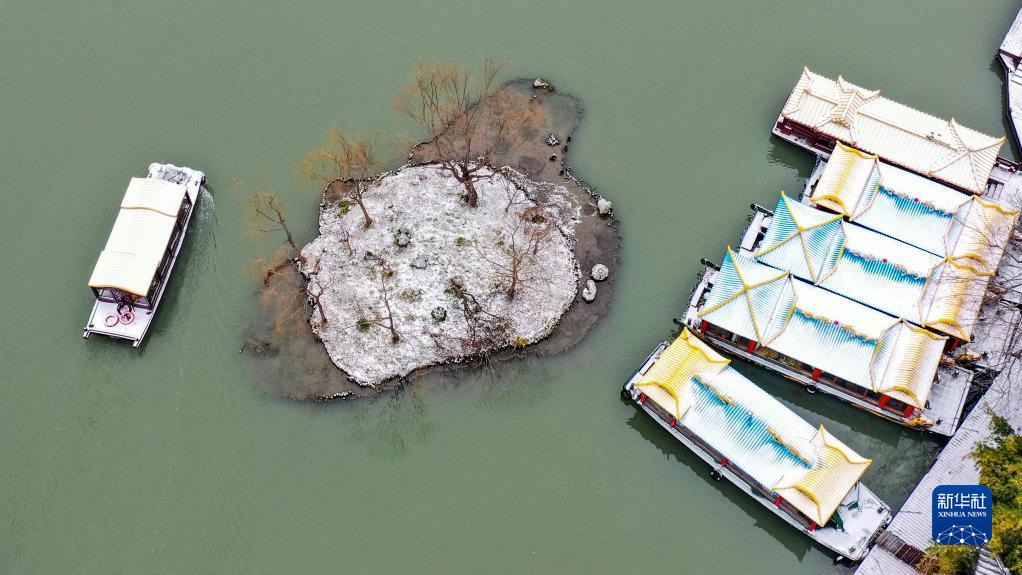 這是1月15日拍攝的江蘇揚州瘦西湖雪景(無人機照片)。