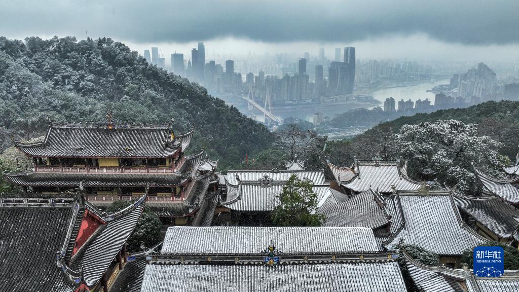 這是1月15日在重慶南岸區涂山寺拍攝的雪景(無人機照片)。