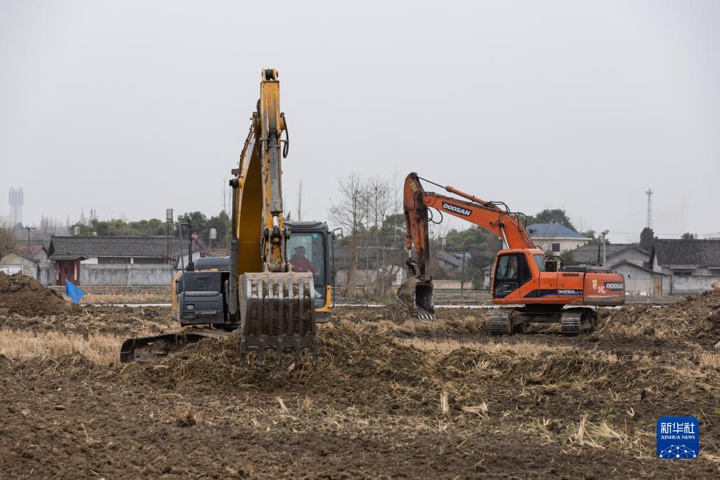 1月14日,在綿竹市孝德鎮清道社區,挖掘機在整治農田。