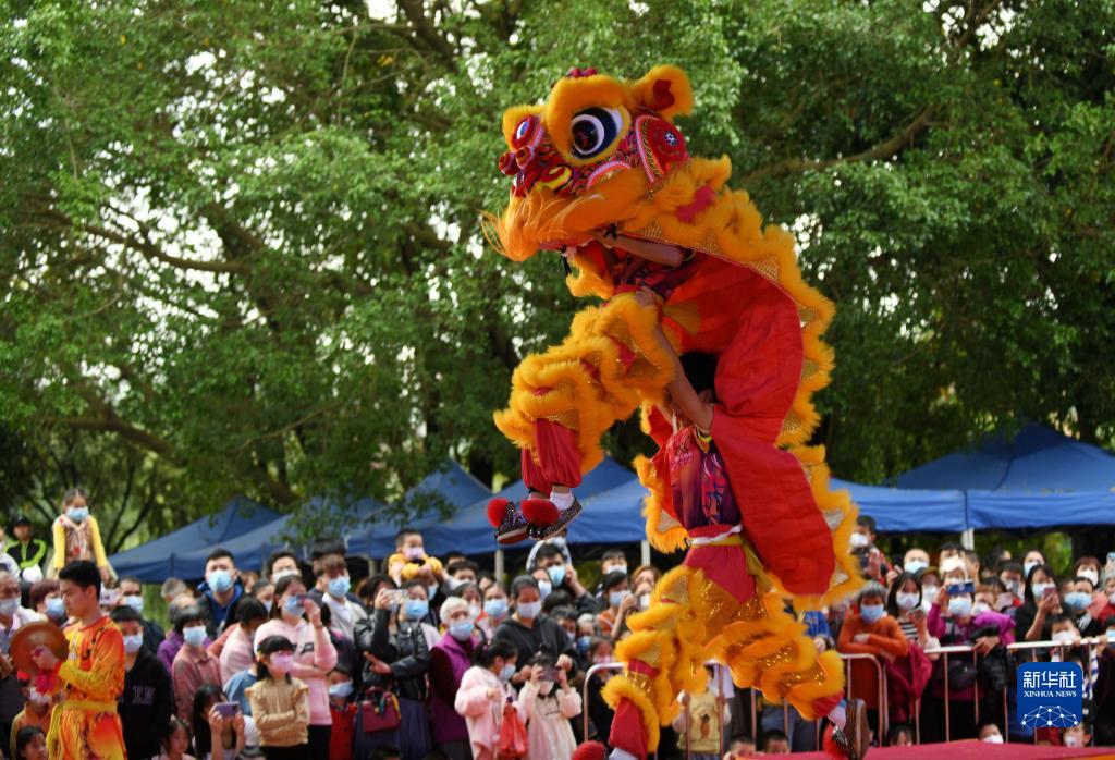當日,由廣州市黃埔區九佛街道主辦的獅王爭霸賽活動在蓮塘古村舉行,參賽獅隊輪番登場,展示“絕活”,營造出歡樂祥和、熱鬧喜慶的節日氛圍。