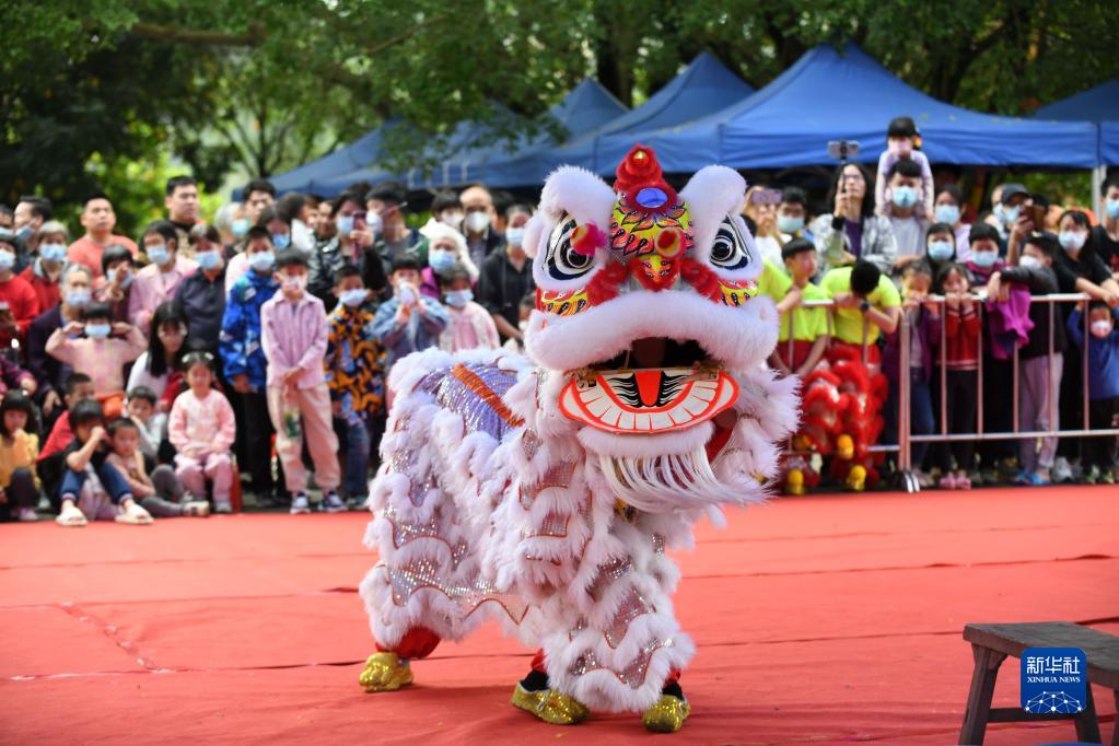 當日,由廣州市黃埔區九佛街道主辦的獅王爭霸賽活動在蓮塘古村舉行,參賽獅隊輪番登場,展示“絕活”,營造出歡樂祥和、熱鬧喜慶的節日氛圍。