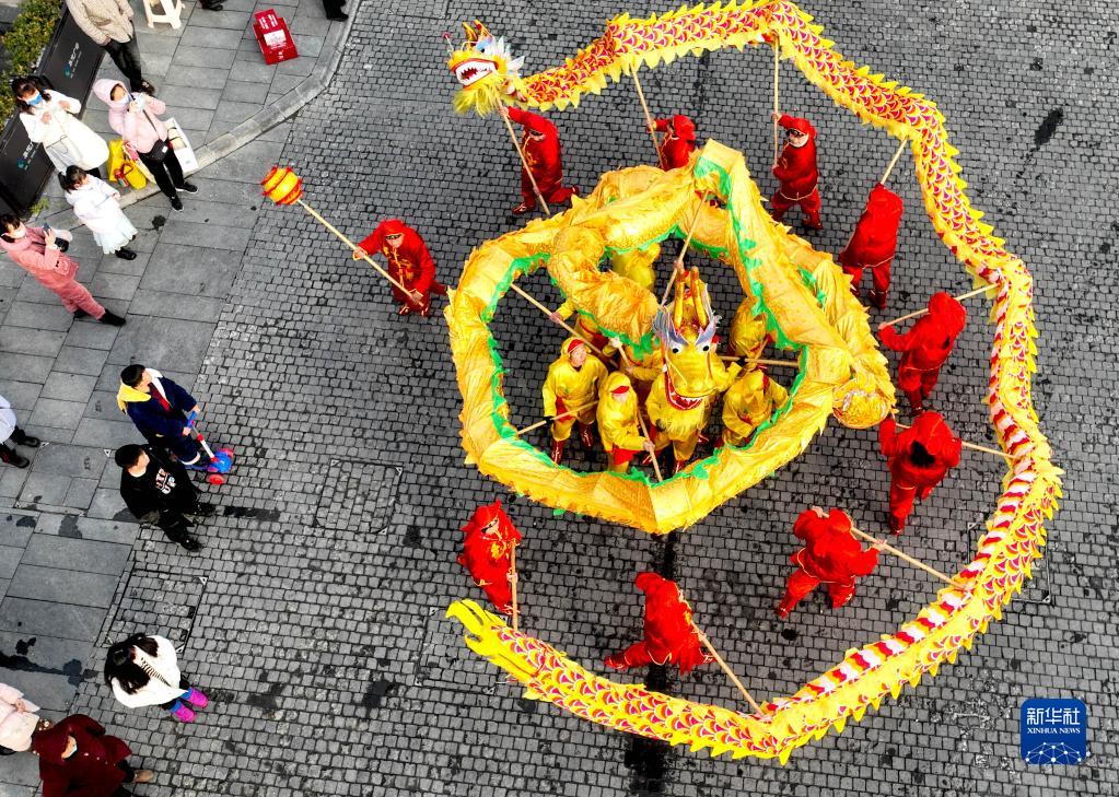 春節臨近,安徽省亳州市舉辦民俗表演迎新春活動,民間藝人表演舞龍、斗驢、抬花轎、扭秧歌等民俗節目,迎接新春佳節的到來。