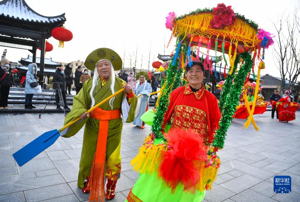春節臨近,安徽省亳州市舉辦民俗表演迎新春活動,民間藝人表演舞龍、斗驢、抬花轎、扭秧歌等民俗節目,迎接新春佳節的到來。