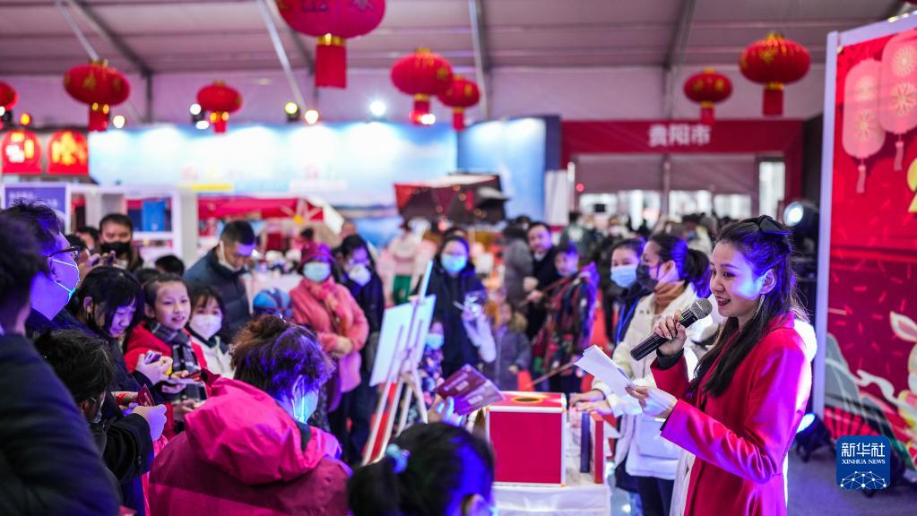 1月15日,市民在貴陽市南明區蘭花廣場年貨節現場參加抽獎活動。