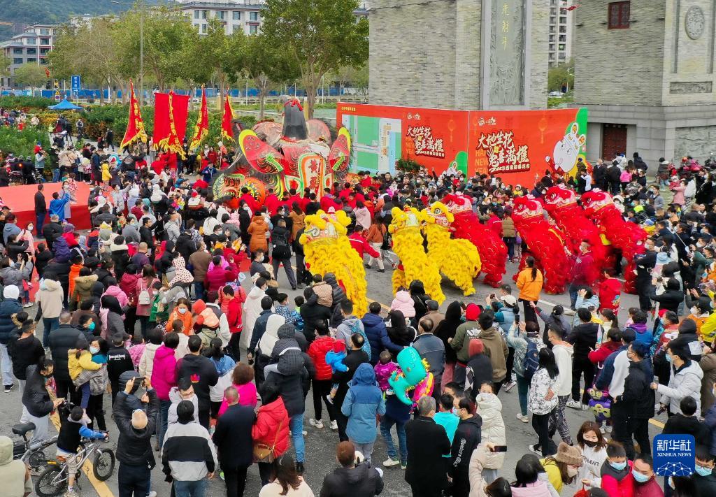 當日,在廣東省佛山市南海區西樵鎮,西樵山黃飛鴻獅藝武術館鎮館之寶“獅王”時隔8年再次“出獅”巡游,眾多市民游客前來爭睹“獅王”風采。