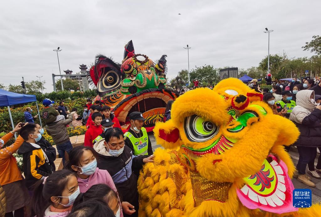 當日,在廣東省佛山市南海區西樵鎮,西樵山黃飛鴻獅藝武術館鎮館之寶“獅王”時隔8年再次“出獅”巡游,眾多市民游客前來爭睹“獅王”風采。