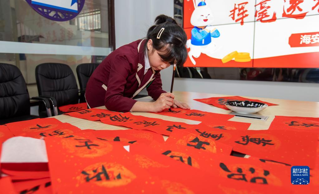 春節臨近,人們書寫傳統的春聯和福字,喜迎新春。