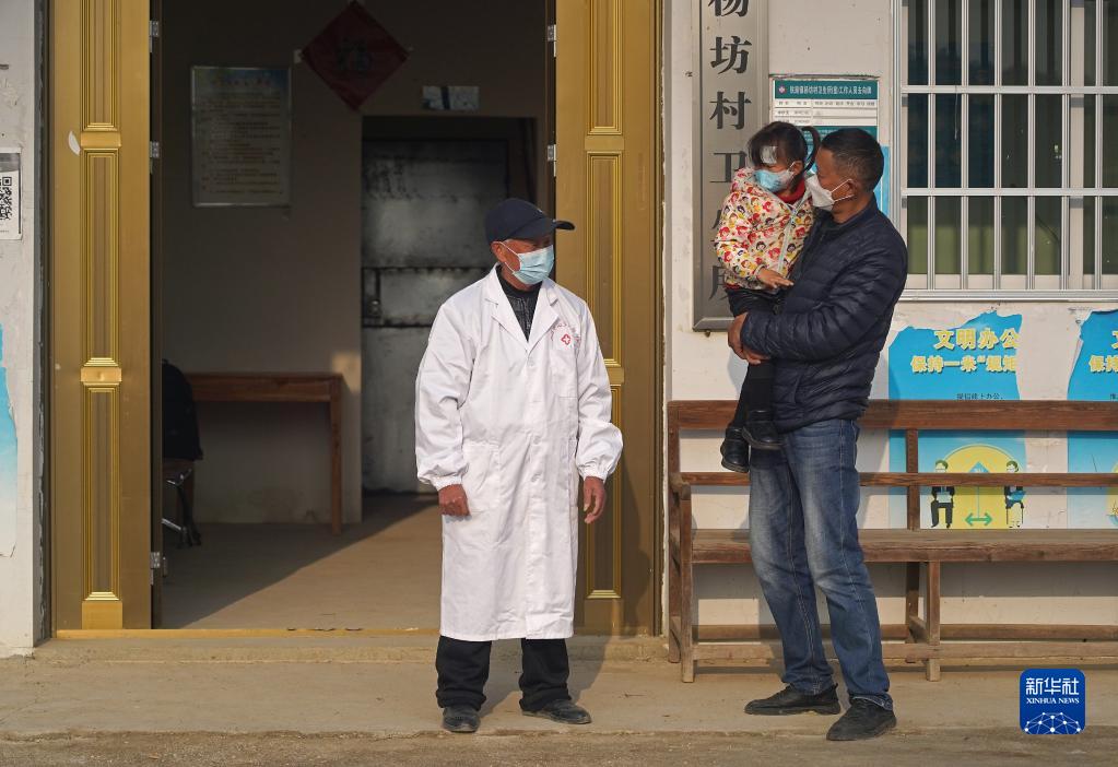 在江西省豐城市鐵路鎮楊坊村衛生所,村醫徐秋生(左)叮囑患者家屬(1月10日攝)。