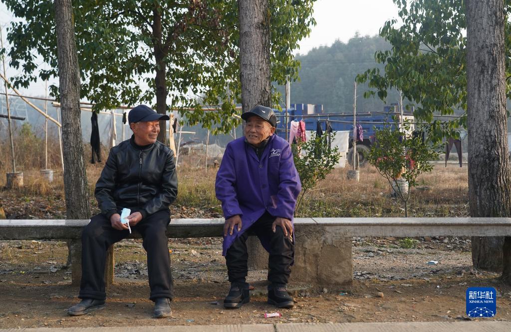 在江西省豐城市鐵路鎮楊坊村,村醫徐秋生(左)和同村的老伙伴聊天,詢問其健康狀況(1月10日攝)。