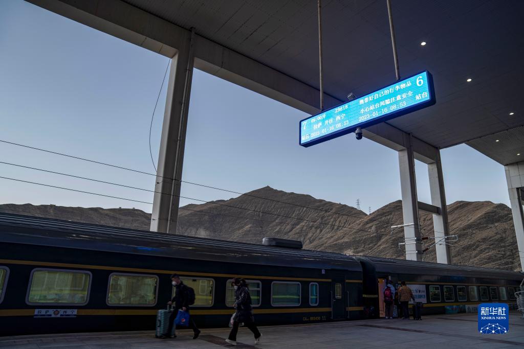 在拉薩火車站,黃起崗乘坐的火車準備發車(1月16日攝)。
