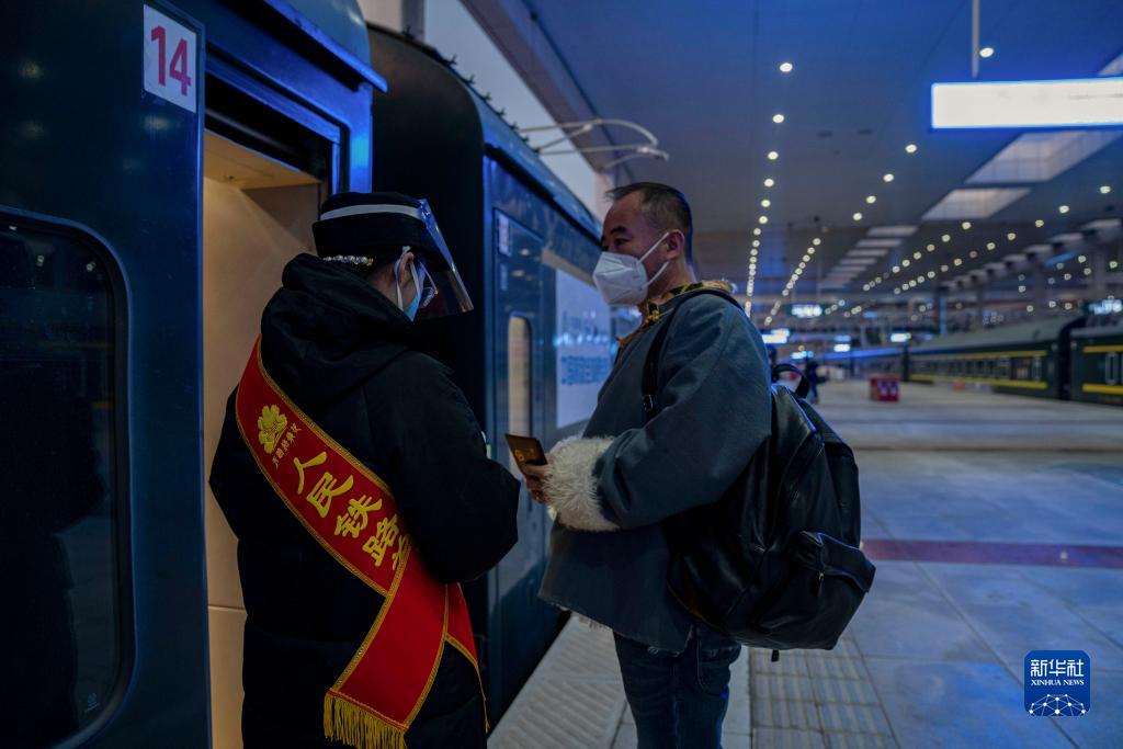 在拉薩火車站,黃起崗檢票上車,準備回家(1月16日攝)。