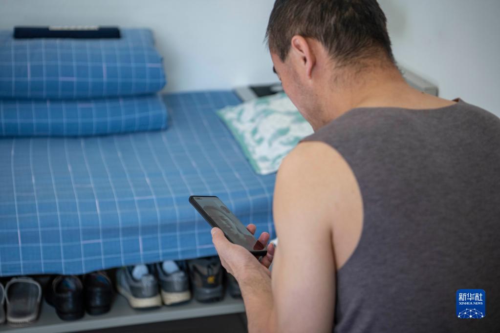 在拉薩機輛整備中心的宿舍里,黃起崗和女兒視頻通話(1月11日攝)。