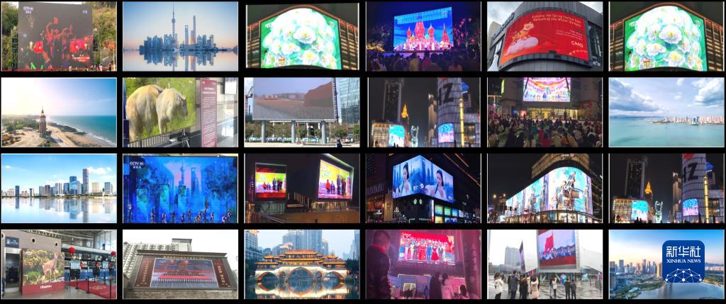 中央廣播電視總臺將采用“百城千屏+云聽”雙平臺同步直播春晚,觀眾可在全國約500個城市的文化廣場“百城千屏”8K超高清公共大屏上,配合云聽客戶端享受沉浸視聽效果。這是效果示意圖。