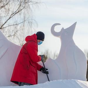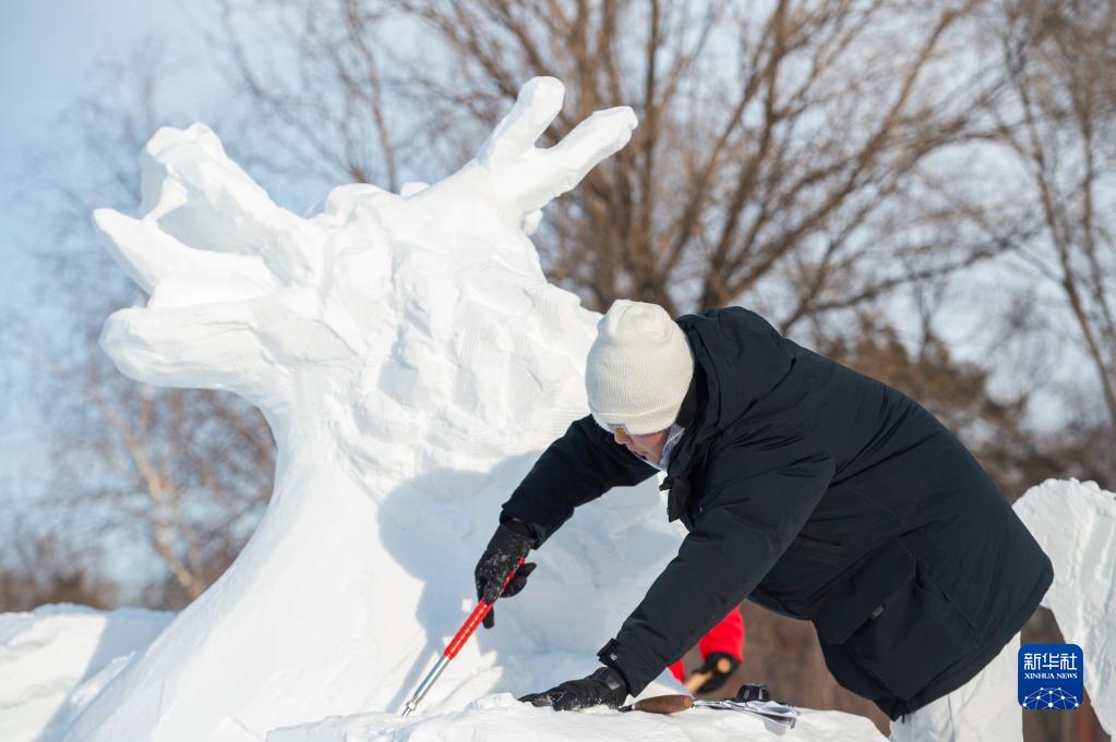 當日,在“冰城”哈爾濱市太陽島雪博會園區內舉行的第二十九屆全國雪雕比賽進入第二個比賽日,來自國內15支隊伍的數十名雪雕高手在賽場上比拼技藝,不少參賽雪雕作品已初見雛形。