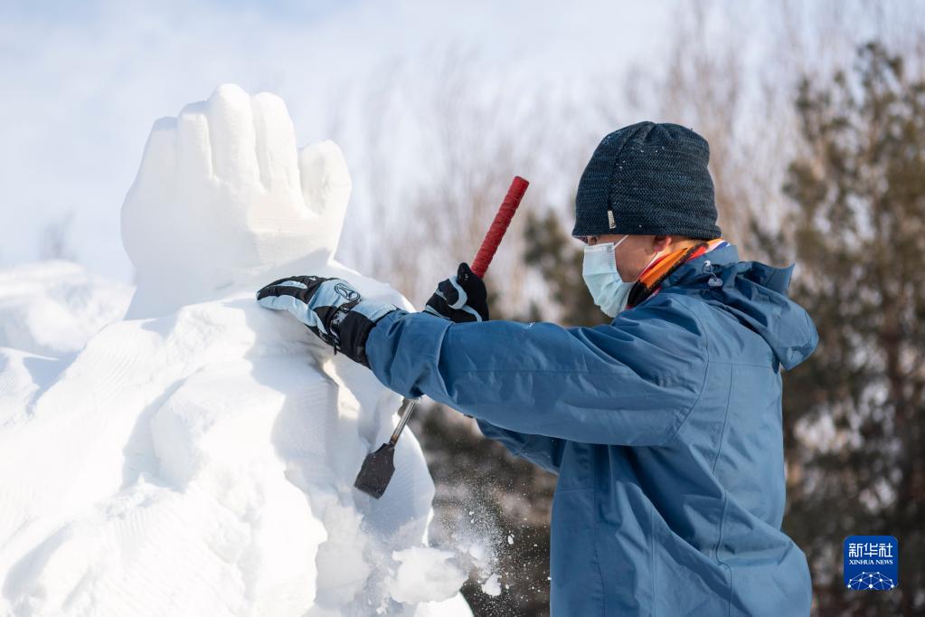當日,在“冰城”哈爾濱市太陽島雪博會園區內舉行的第二十九屆全國雪雕比賽進入第二個比賽日,來自國內15支隊伍的數十名雪雕高手在賽場上比拼技藝,不少參賽雪雕作品已初見雛形。