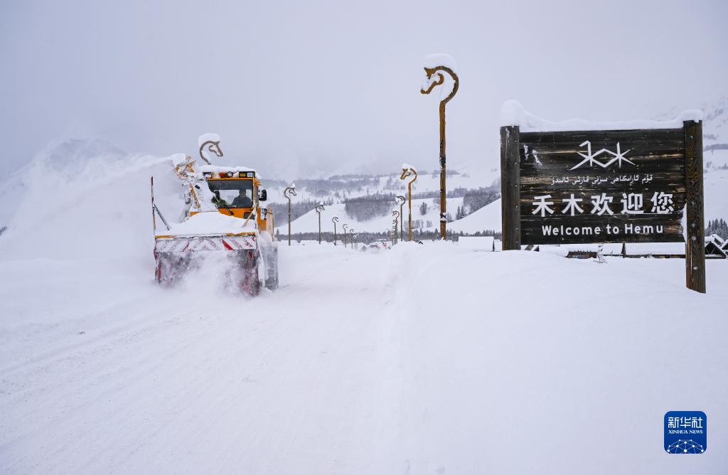 清雪車在新疆阿勒泰地區禾木村清理道路積雪(1月10日攝)。