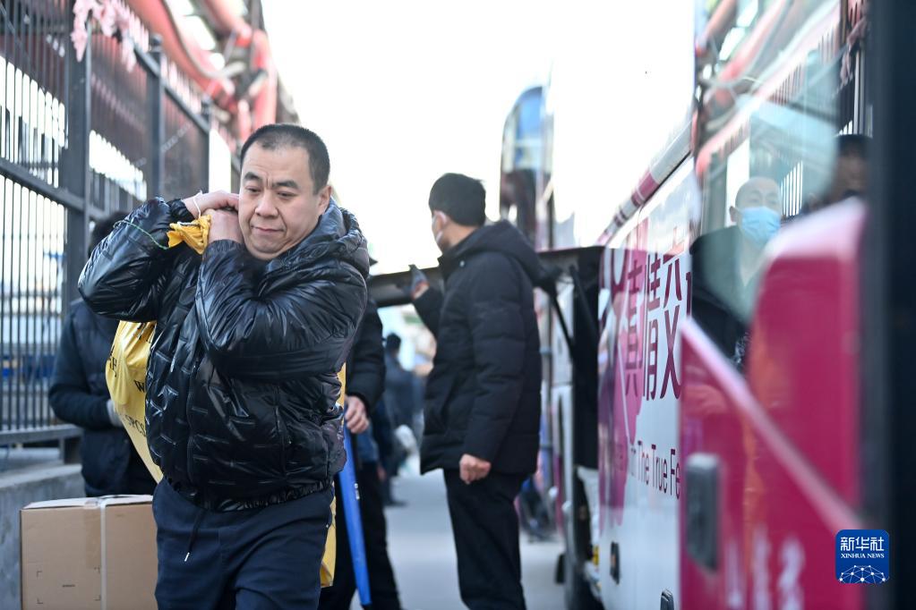 1月16日,返鄉工人在天津市北辰區宜興埠鎮準備登車返鄉。
