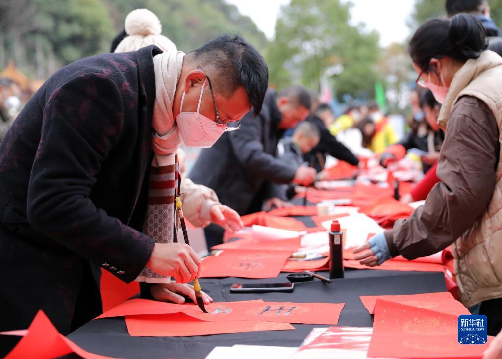 春節臨近,多地組織書法志愿者走進社區、工地等場所,為人們書寫春聯和福字,迎接春節的到來。