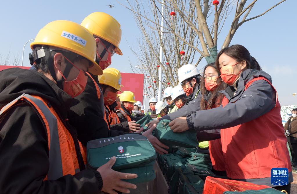1月16日,志愿者為即將返鄉的中建四局六公司的工人發放防疫愛心包。