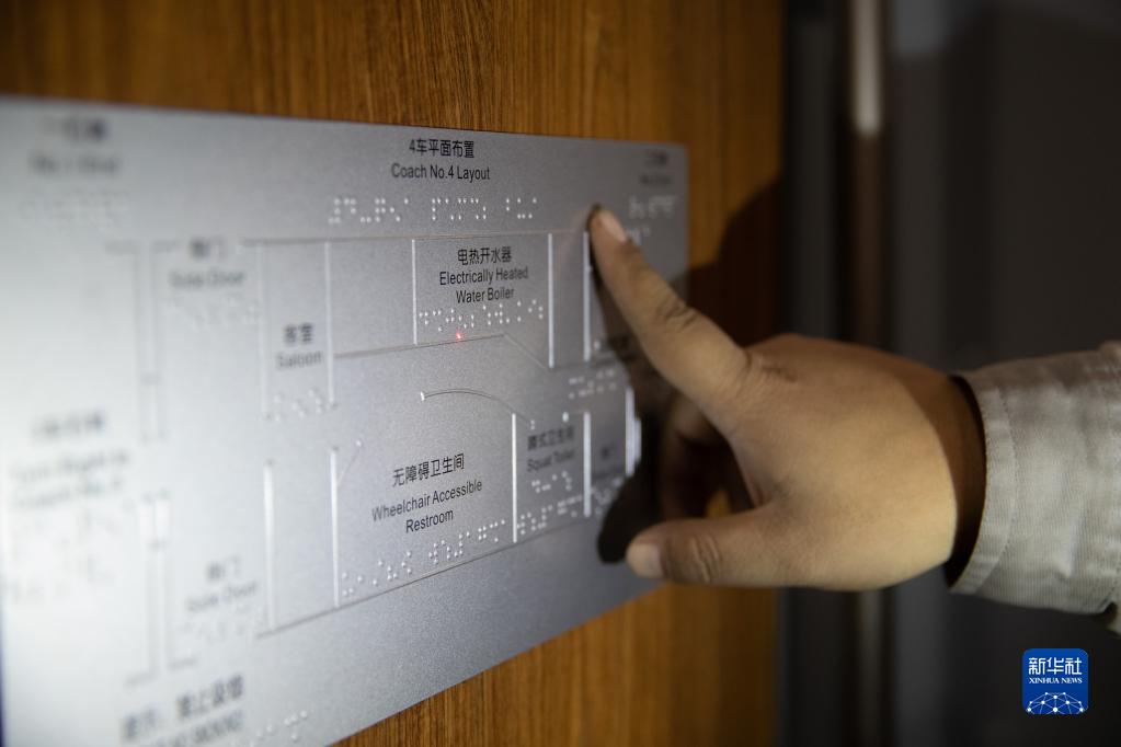 1月16日,工作人員在CR400BF-GZ型復興號高寒智能動車組專門設置的無障礙車廂內進行作業。