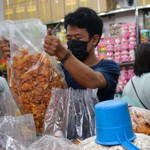 1月16日,人們在印度尼西亞雅加達中國城的街邊商鋪購買年貨。