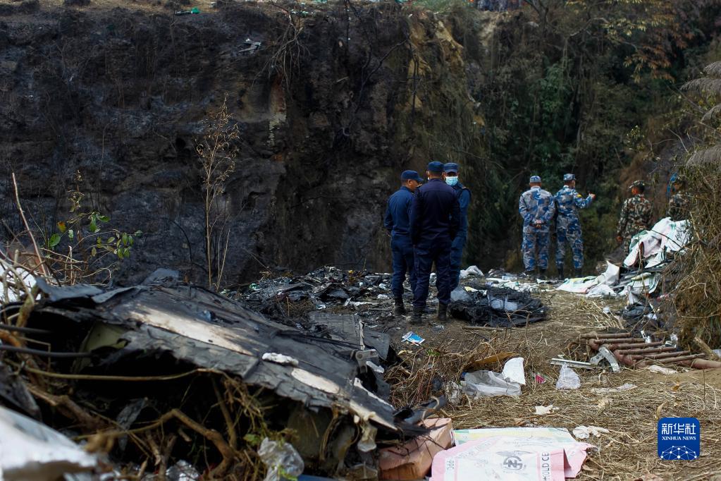 1月16日,救援人員在尼泊爾博克拉地區墜機現場工作。
