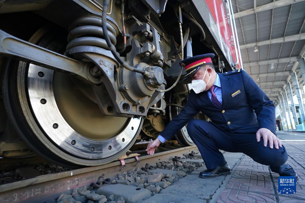 1月15日,丁建華對火車頭進行檢查。