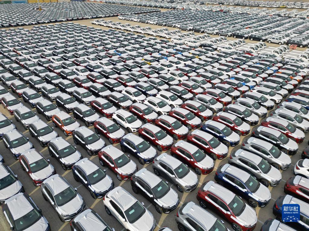 1月17日,出口商品車在山東煙臺港集結準備裝船(無人機照片)。