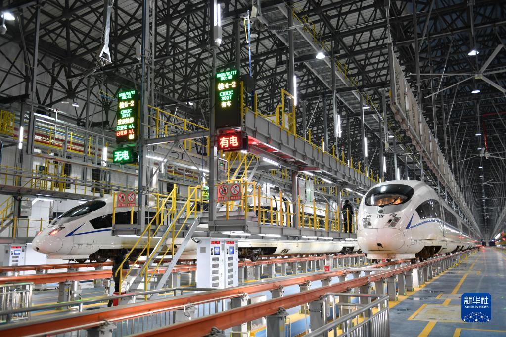 1月17日,列車??吭陂L沙西動車運用所檢查庫。
