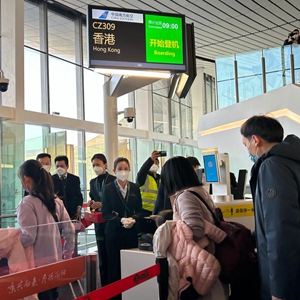 1月17日上午9時許,前往香港的CZ309航班搭乘100多名乘客騰空而起,中國“新國門”北京大興國際機場“暫?!苯甑膰H及地區客運航班“重啟”,國際及港澳臺地區客運航線正式恢復。