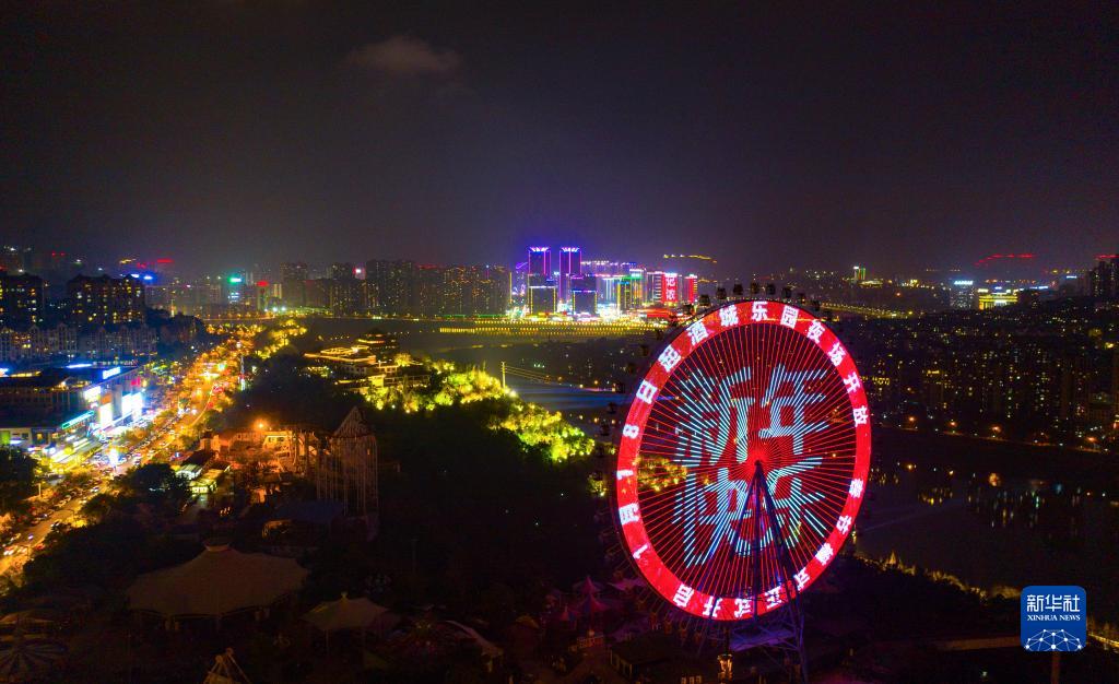 四川省瀘州市江陽區的摩天輪點亮新年問候(無人機照片,1月16日攝)。