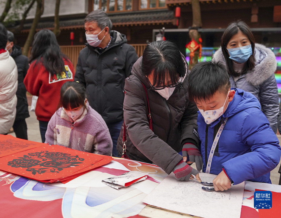 1月17日,市民在南昌市百花洲八一公園的“迎新春 送祝?!被顒由现谱髂景迥戤?。