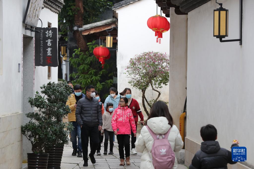 人們在福州三坊七巷歷史文化街區游覽(1月17日攝)。