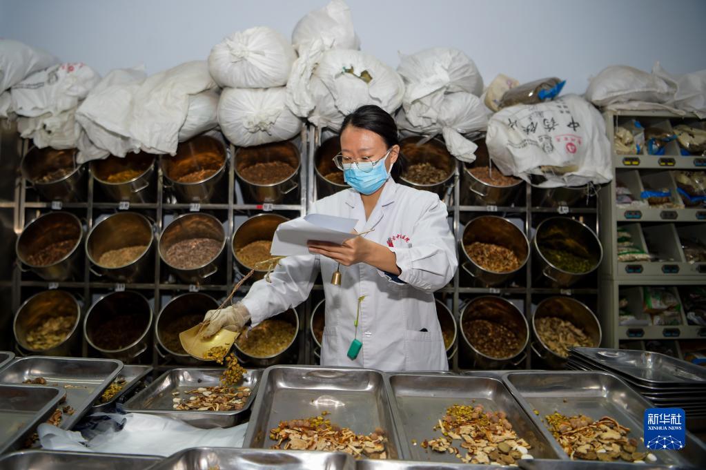 1月17日,內蒙古自治區中醫醫院藥劑師根據處方調配中藥。