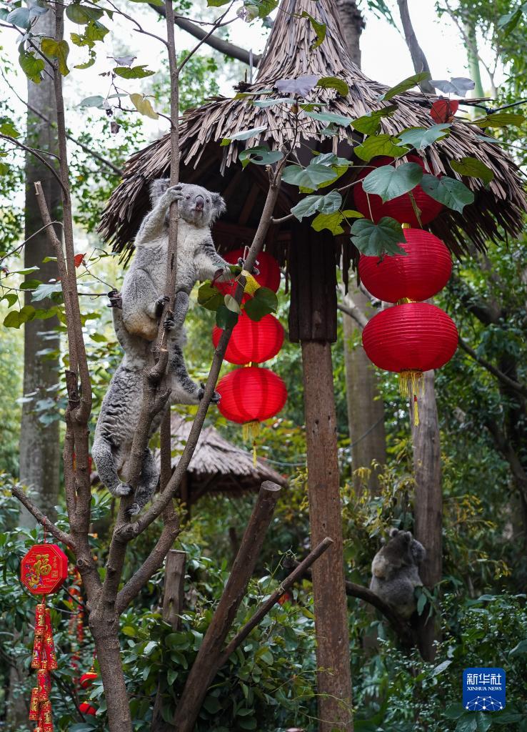 當日,廣州長隆野生動物世界的7代66只考拉大家族集體亮相,喜迎農歷春節。其中,出生于2004年的“淘淘”是首批從澳大利亞漂洋過海來到中國的考拉當中的一只,出生于2022年的“抱抱”是長隆考拉第七代新生寶寶。