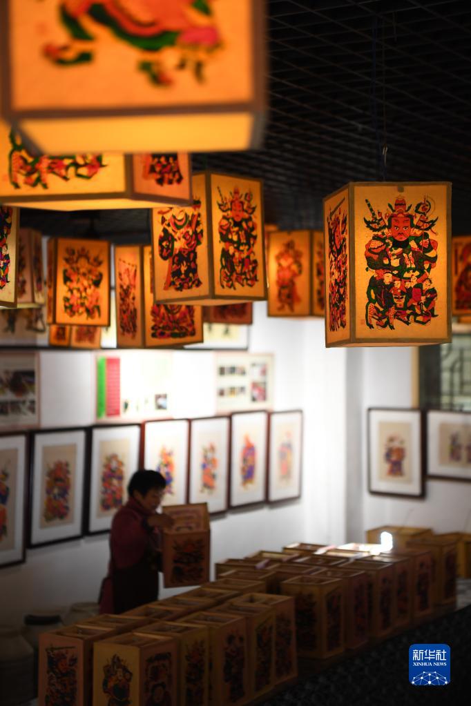 1月17日,在灘頭鎮福美祥年畫作坊,年畫藝人尹冬香在整理年畫制成的燈籠。