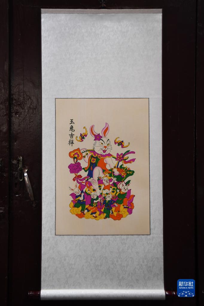 這是1月17日在灘頭鎮福美祥年畫作坊拍攝的兔生肖年畫。