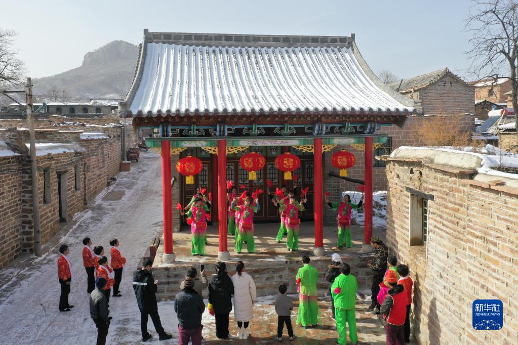 新春佳節臨近,在太行山深處的河北省邢臺市信都區將軍墓鎮內陽村,村民們緊鑼密鼓排練鑼鼓、腰鼓、跑驢、扭秧歌、劃旱船等傳統鄉藝節目,為即將舉辦的“村晚”做準備。內陽村歷史悠久,村中有古戲樓、古院落等歷史建筑,被列入第五批中國傳統村落名錄。