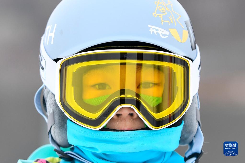 在吉林省吉林市萬科松花湖度假區,都軒銘在訓練間隙休息(2023年1月14日攝)。
